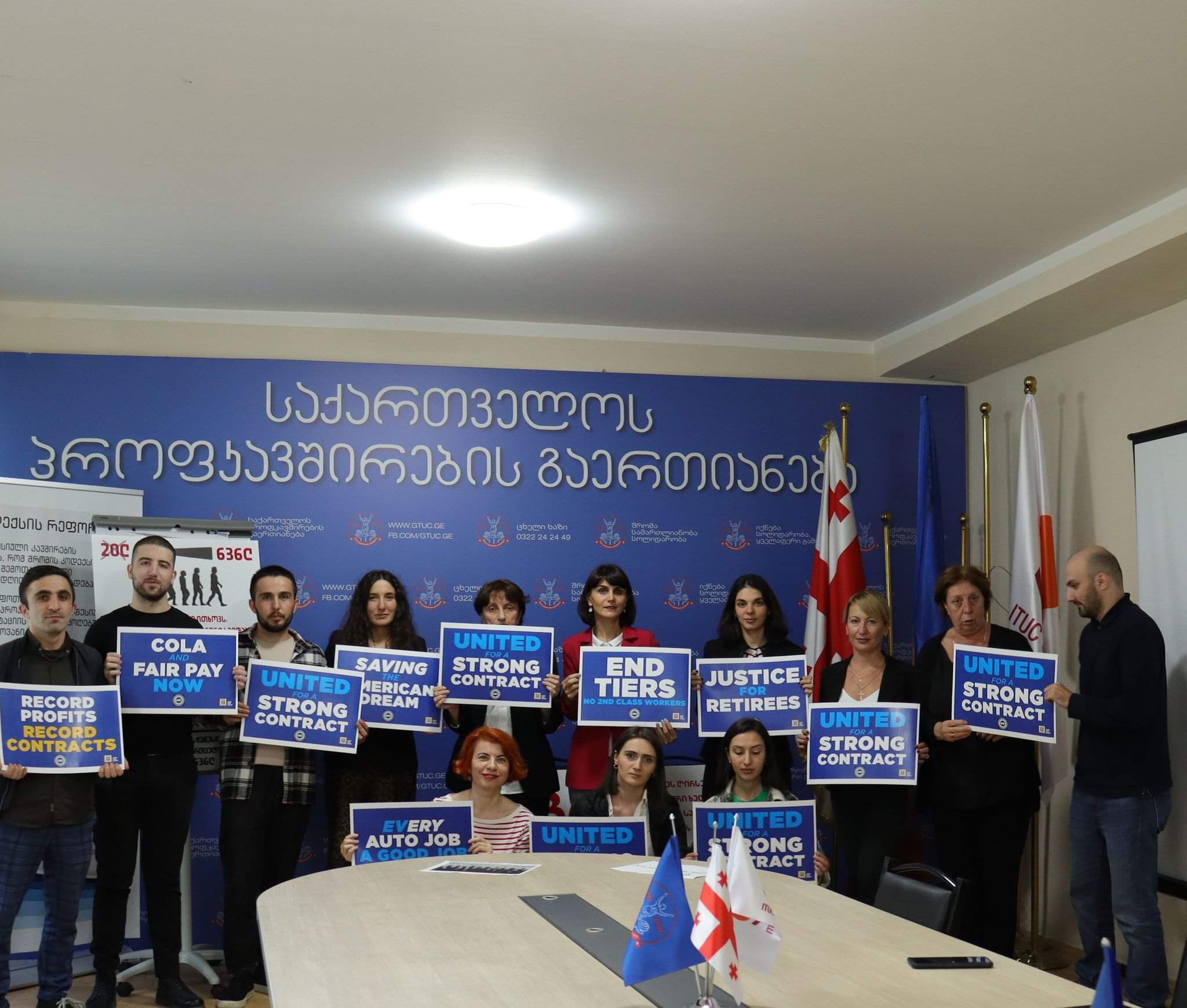 ამერიკის სასოფლო-სამეურნეო, საავტომობილო და საავიაციო სფეროში დასაქმებულთა საერთაშორისო პროფკავშირის (UAW) ერთი მილიონი აქტიური და გადამდგარი წევრის სახელით, მინდა გამოვხატო ჩემი ღრმა მადლიერება ამ გაფიცვაში თქვენი სოლიდარული სიტყვებისა და მხარდაჭერისთვის. ამჟამად, „Ford”-ის, „General Motors”- ისა და  „Stellantis“- ის ჩვენი ათასობით წევრი გაფიცულია  უსამართლო ანაზღაურების და დაუცველი სამუშაოს გამო. ათასზე მეტი მუშაობს ვადაგასული კონტრაქტით და ელოდება გამოძახებას.
