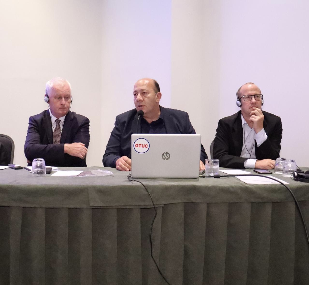 ტრიანგლიმ მაღალი დონის შეხვედრები გამართა საქართველოს პროფკავშირების ლიდერებთან, საქართველოს დევნილთა, შრომის, ჯანმრთელობისა და სოციალური დაცვის მინისტრთან, პროფკავშირების წევრ დასაქმებულებთან, ქალთა და ახალგაზრდულ კომიტეტებთან და მედიისთვის შემაჯამებელი კომენტარი გააკეთა.