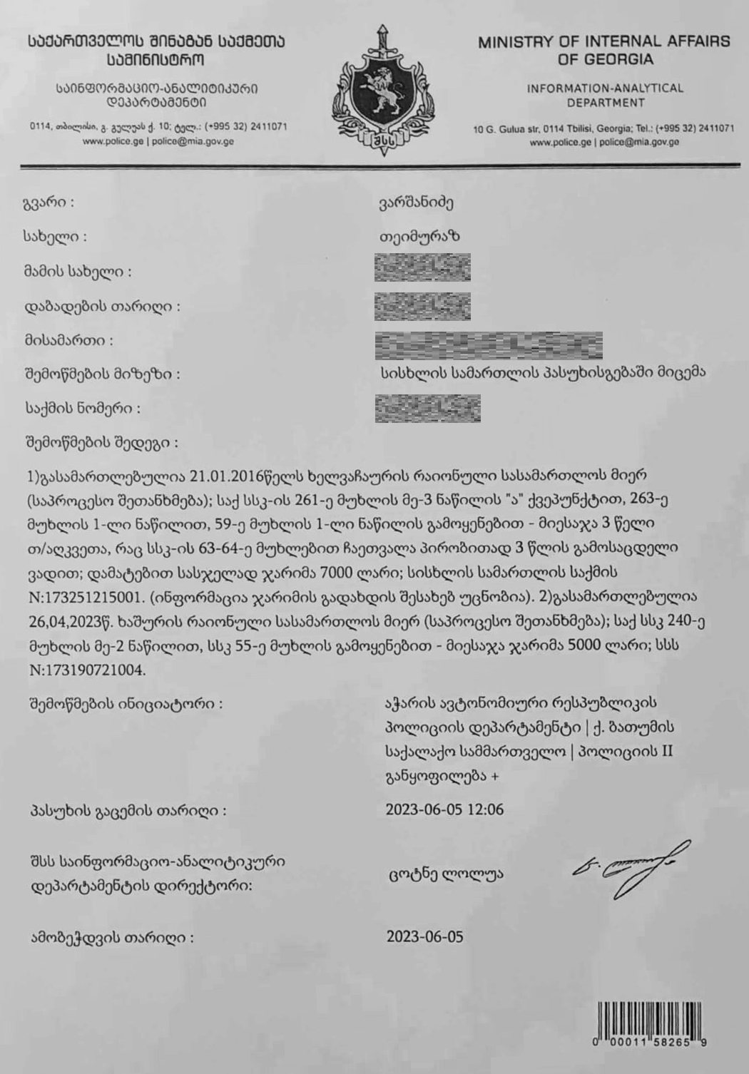 ბრალდებულ თეიმურაზ ვარშანიძის წინასასამართლო სხდომა 2023 წლის 25 ივლისს ბათუმის საქალაქო სასამართლოშია დანიშნული.